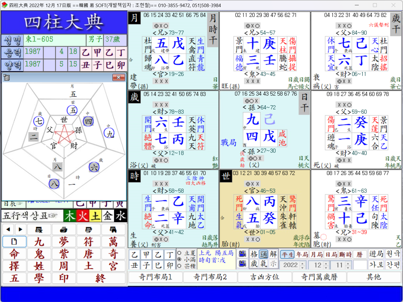 解斷 雙孫이 動中하여 月官을 剋하므로 落仕는 無疑한데 月宮이 杜門歸魂인 故로 救濟가 不可하다.