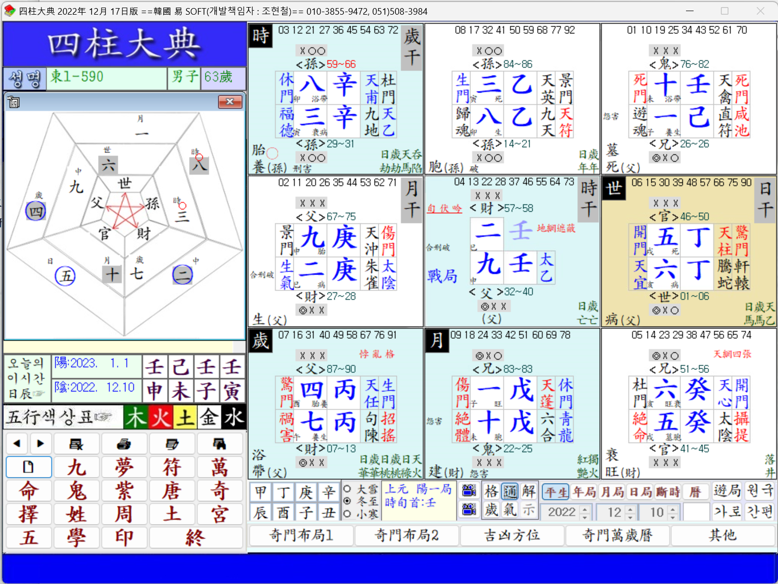 解斷 歲生月하고 月生中에 中生日하고 日生時까지의 通氣는 모두가 眞生으로서의 通氣인고로 이는 徹底히 貪生忘剋의 規則이 適用되므로 이때엔 成局의 경우와 같이 中宮의 九金正印과 上數의 二火가 時上 三木과 三刑을 作하지 않는다.