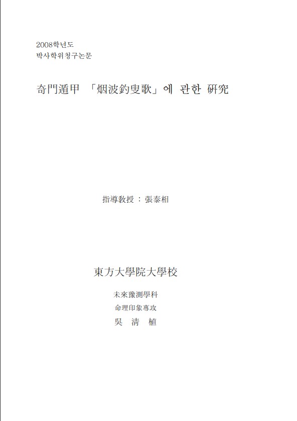 | 奇門遁甲의 布局과 解斷에 관한 硏究 (0) | 2023.01.06 |