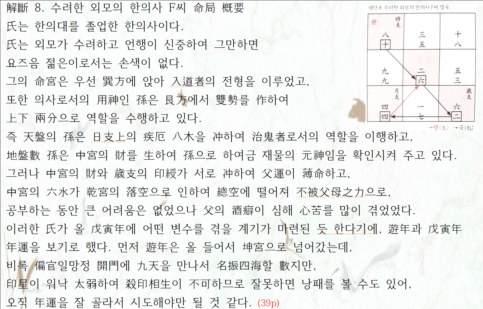 | 수려한 외모의 한의사 F씨 연국 槪要(印我生孫+剋官) (0) | 2023.03.10 |