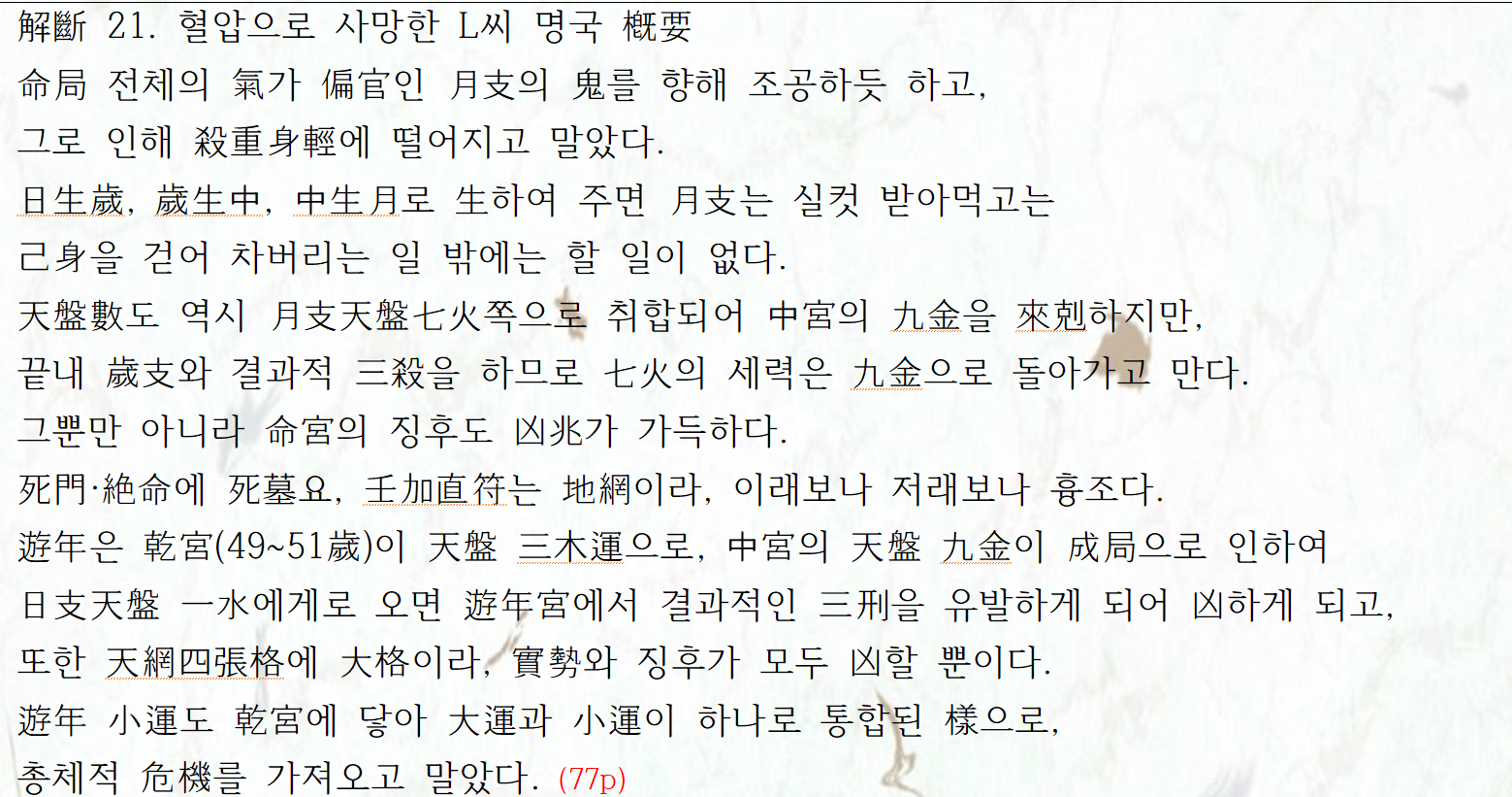 | 혈압으로 사망한 L씨 월국 (0) | 2023.03.10 |