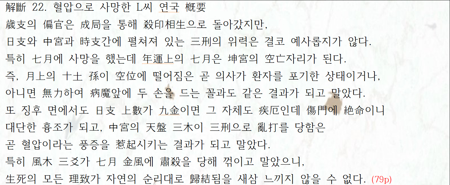 | 혈압으로 사망한 L씨 월국 (0) | 2023.03.10 |