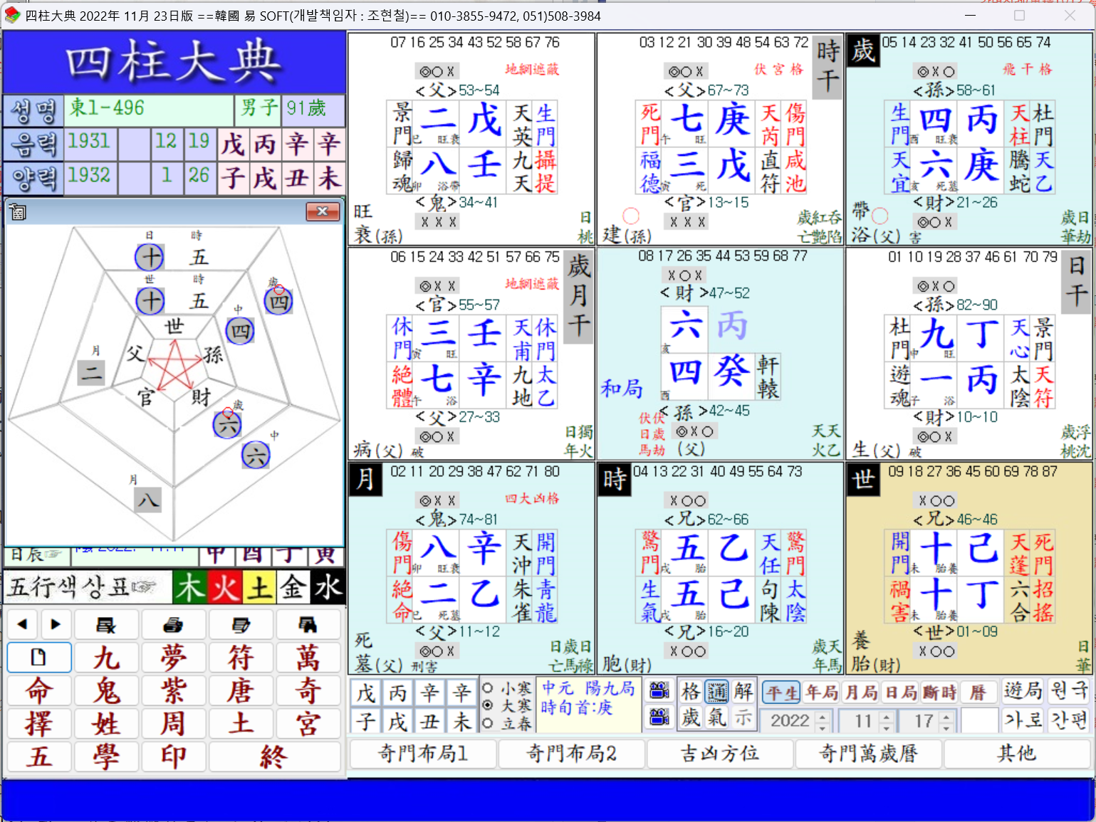 世爻 十土가 得令에 雙勢를 作하여 信實하고 꾸준한 勞力型임을 알 수가 있다.