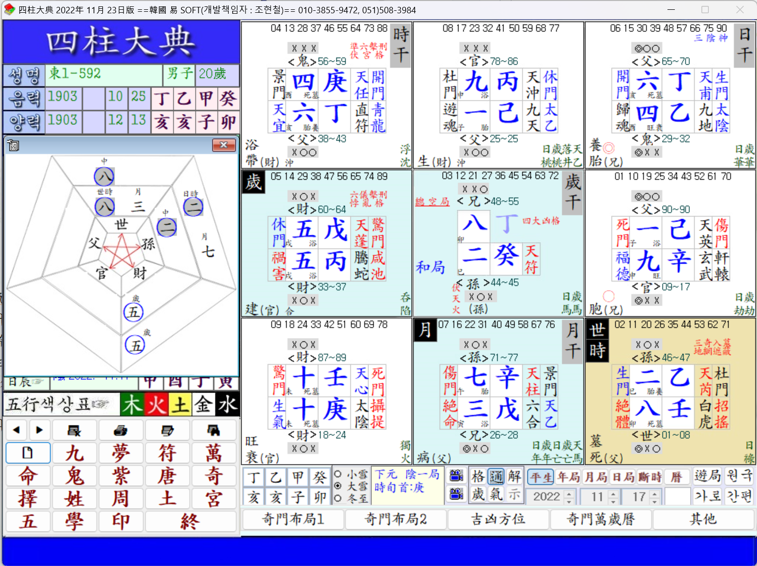 故로 先生의 命局은 學者로서의 名聲보다는 術家로서의 成功이 앞선다고 봐야 하겠다.