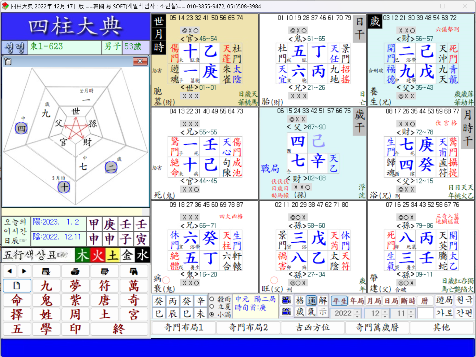 故로 刑事件은 印綬가 爲用이 되고 民事件은 子孫이 爲用이다. 用神이 旺吉해야 함은 勿論이다.