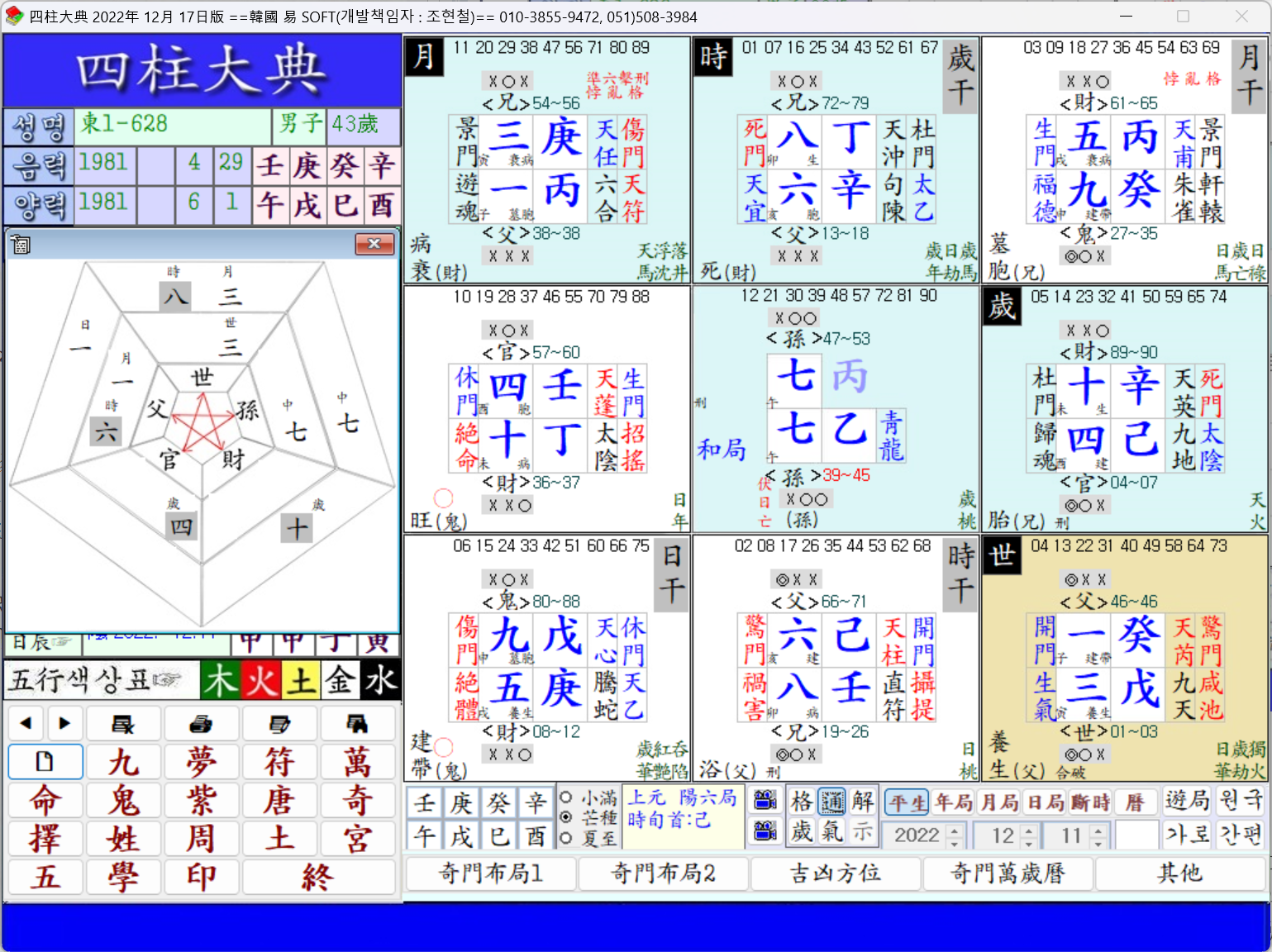 聞走失之年月日時局으로 設局하여 局中 一水와 玄武를 走失者라고 하니 이때엔 陰陽遁을 不顧하고 八將에는 朱雀代用으로 玄武를 쓴다.