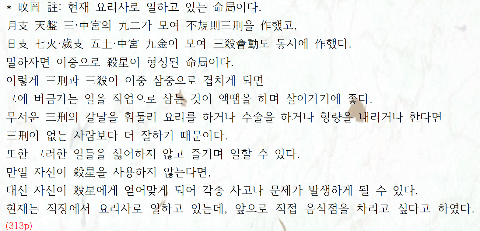 감명실례/삼형살(종합해단) 布局 35. 요리사로 일하는 삼형살의 명국 한국기문둔갑학술연구원 2023. 4. 26. 15:32 出處 : 奇門遁甲의 모든 것 綜合解斷과 三刑殺(李奇穆 孫惠琳)