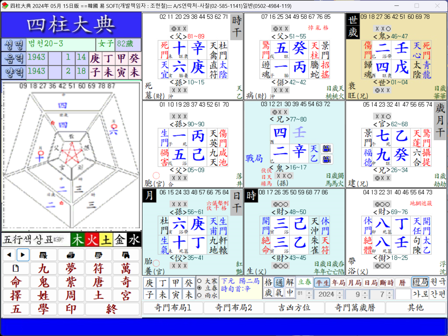 그러다가 坎宮天盤(48~50歲) 財運에 와서 三木은 坤宮天盤의 二火를 生하면 이건 다시 中宮天盤의 兄爻를 剋합니다.