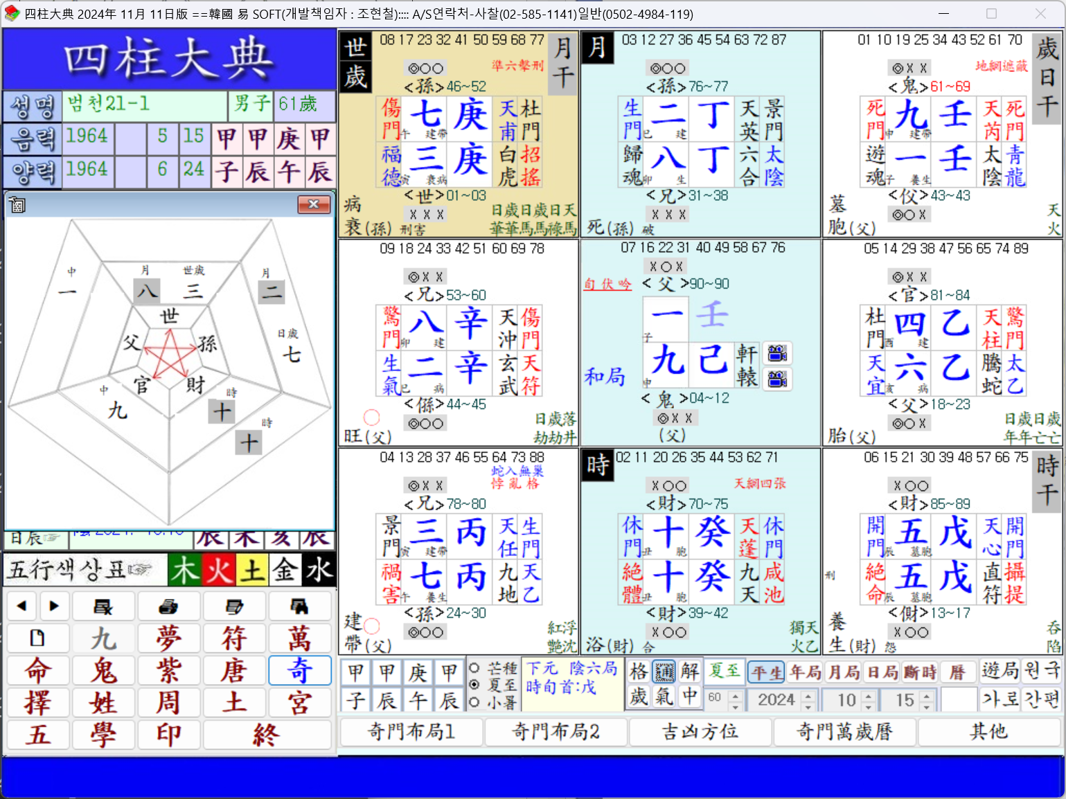 時支宮地盤 十土는 中宮 九金을 生하고 父爻가 없고 眞剋이 世宮 三木이라 나를 직접 剋을 했습니다.