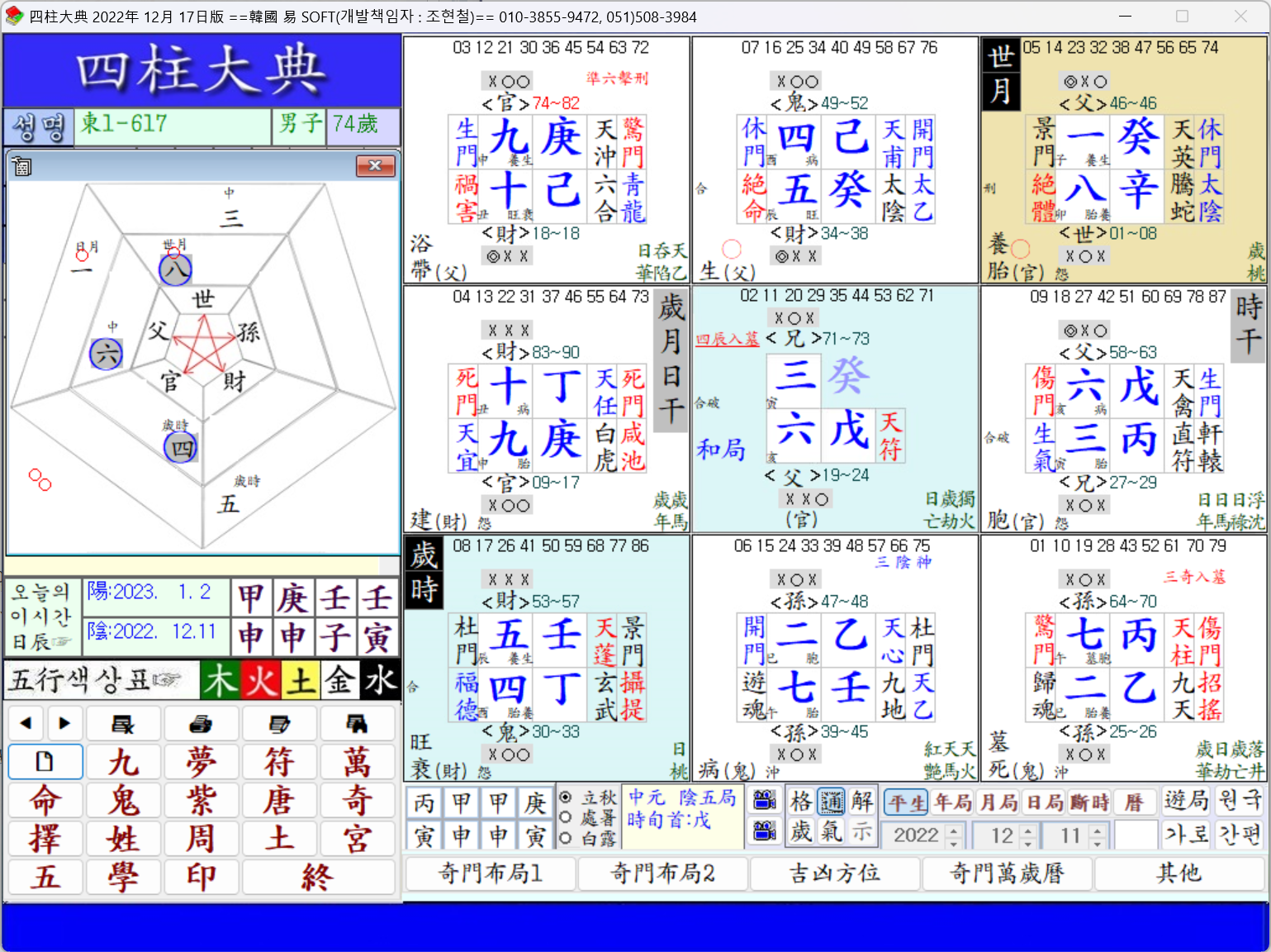 (※ 위의 포국은 원본과 맞지 않다. 甲申日은 中元인데 동기정해 에서는 상원으로 계산하여 煙局쪽이 맞지 않으니 참고.)
