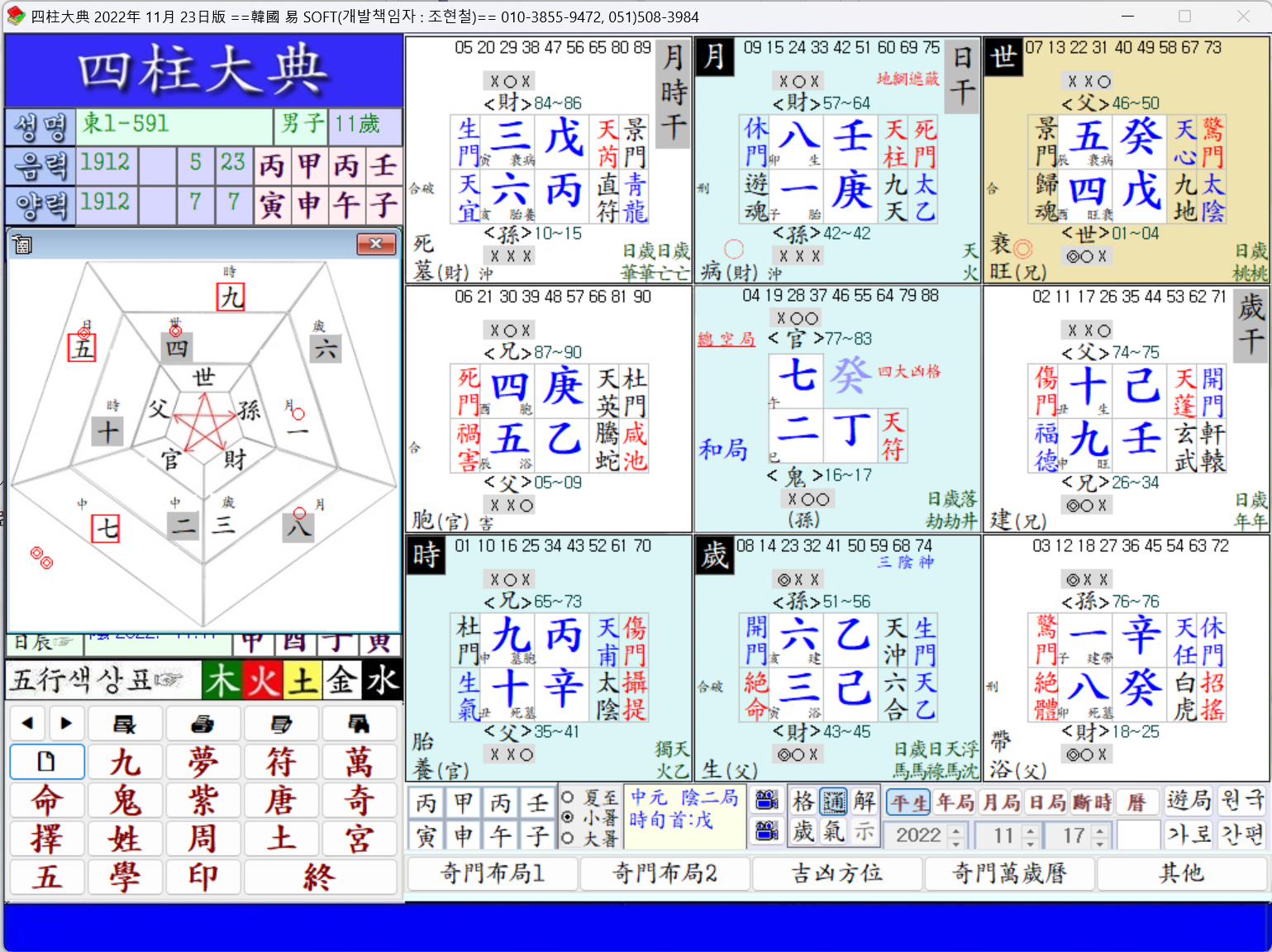 또 歲上에 開門을 月上에 休門을 日支가 景門을 時支가 生氣를 各各 얻어 化殺도 아울러 兼한다.