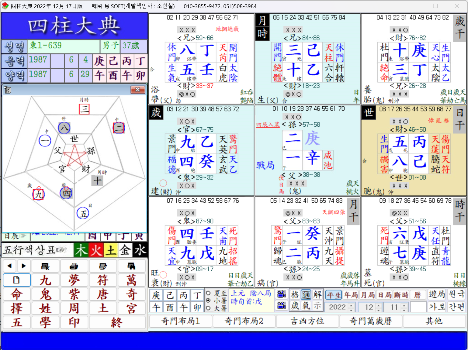 또한 病占時에 一六水가 鬼를 作하면 濕痰이니 水鬼가 左便에 居則 左邊肝膽에 濕痰症勢라 하고 水鬼가 右便이면 右邊肺脾에 생긴 濕痰症勢라 하며 在上이면 濕痰이 上沖하고 在下면 濕痰이 下甕한다.{639}